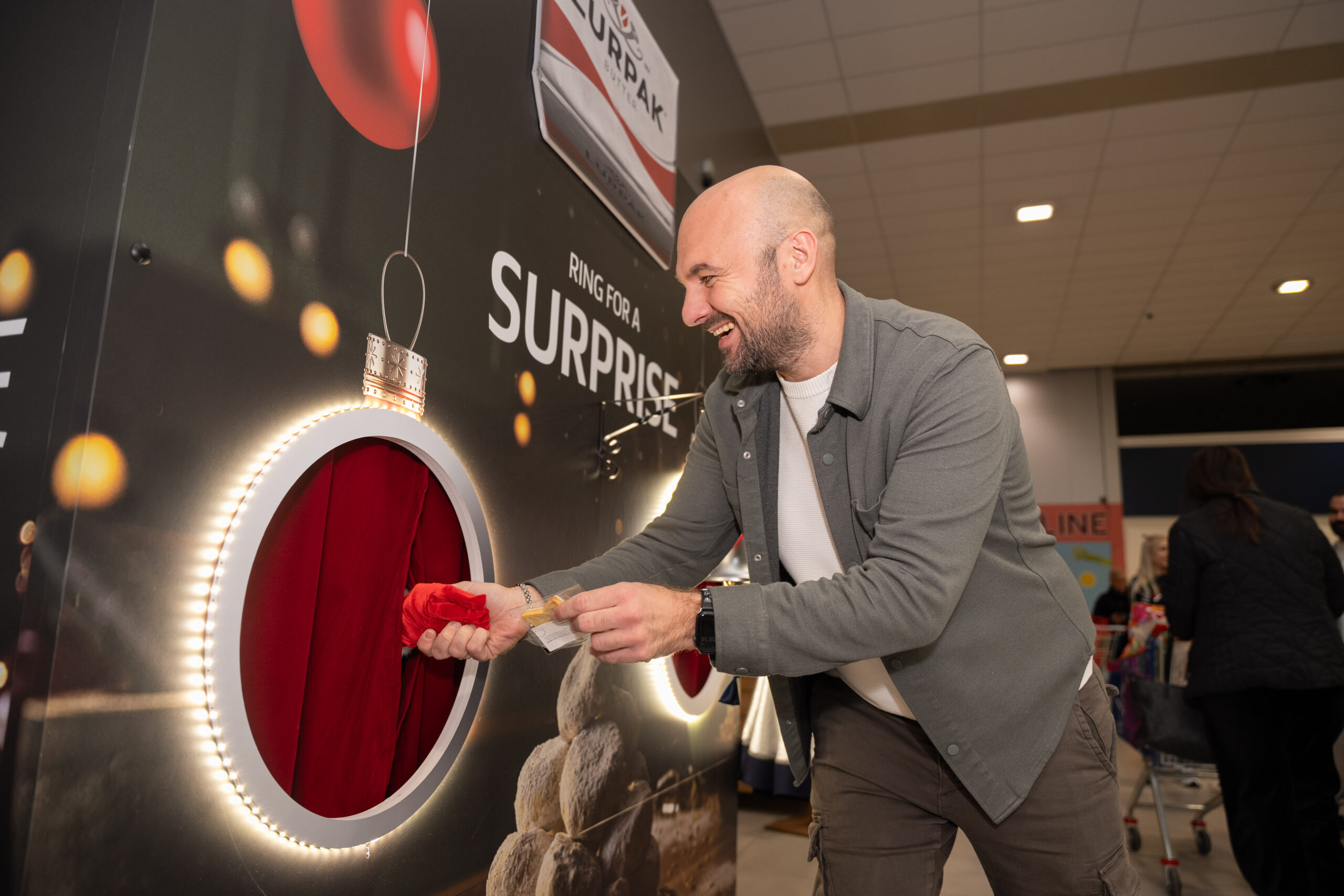 Our Lurpak Christmas Wall had shoppers at hello — literally. They rang a festive bell, a curtain pulled back and out popped a gloved Santa hand offering fresh-baked cookies (yes, made with Lurpak, obviously). With the festive gifting, the magic of Lurpak truly came to life — one cookie at a time.