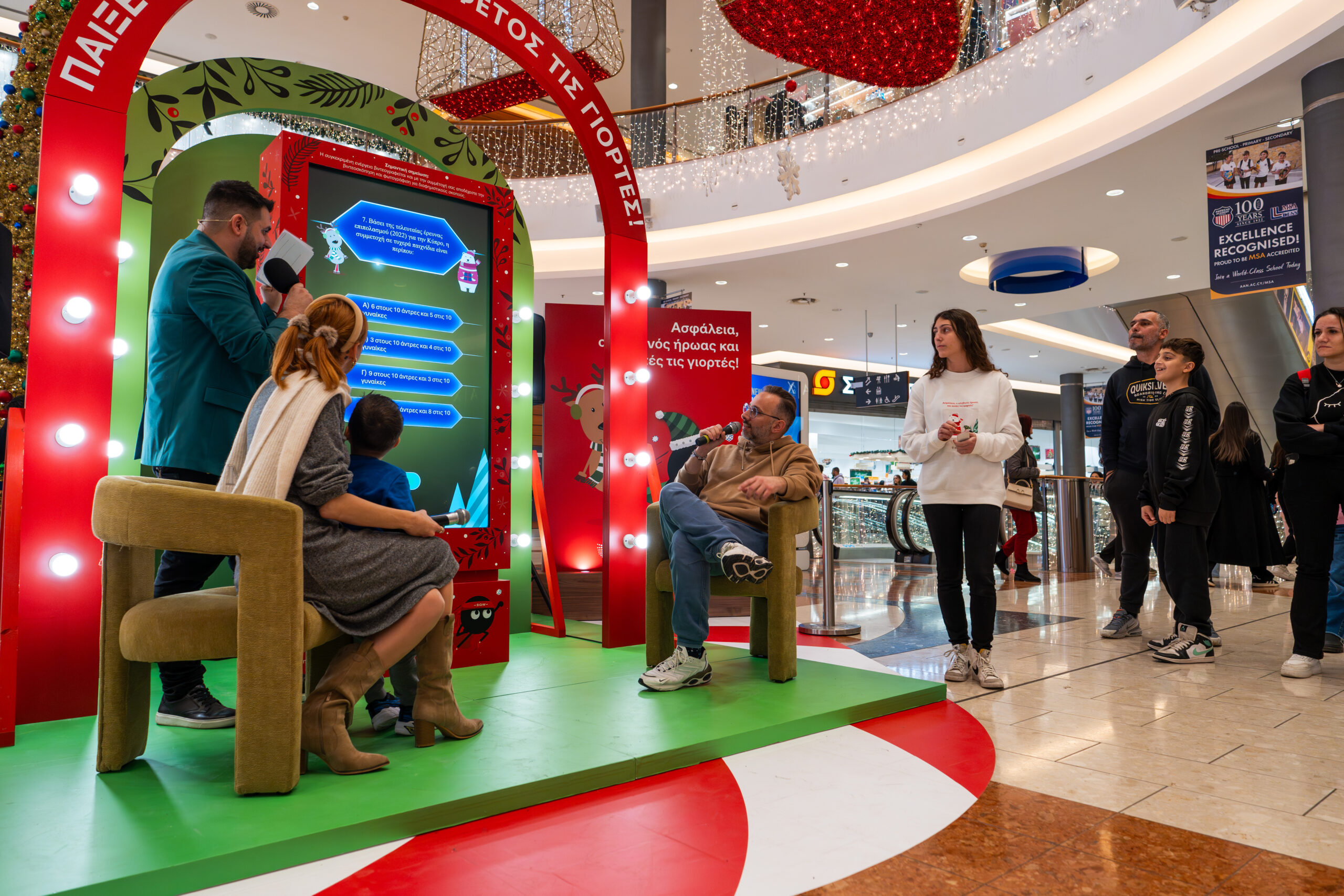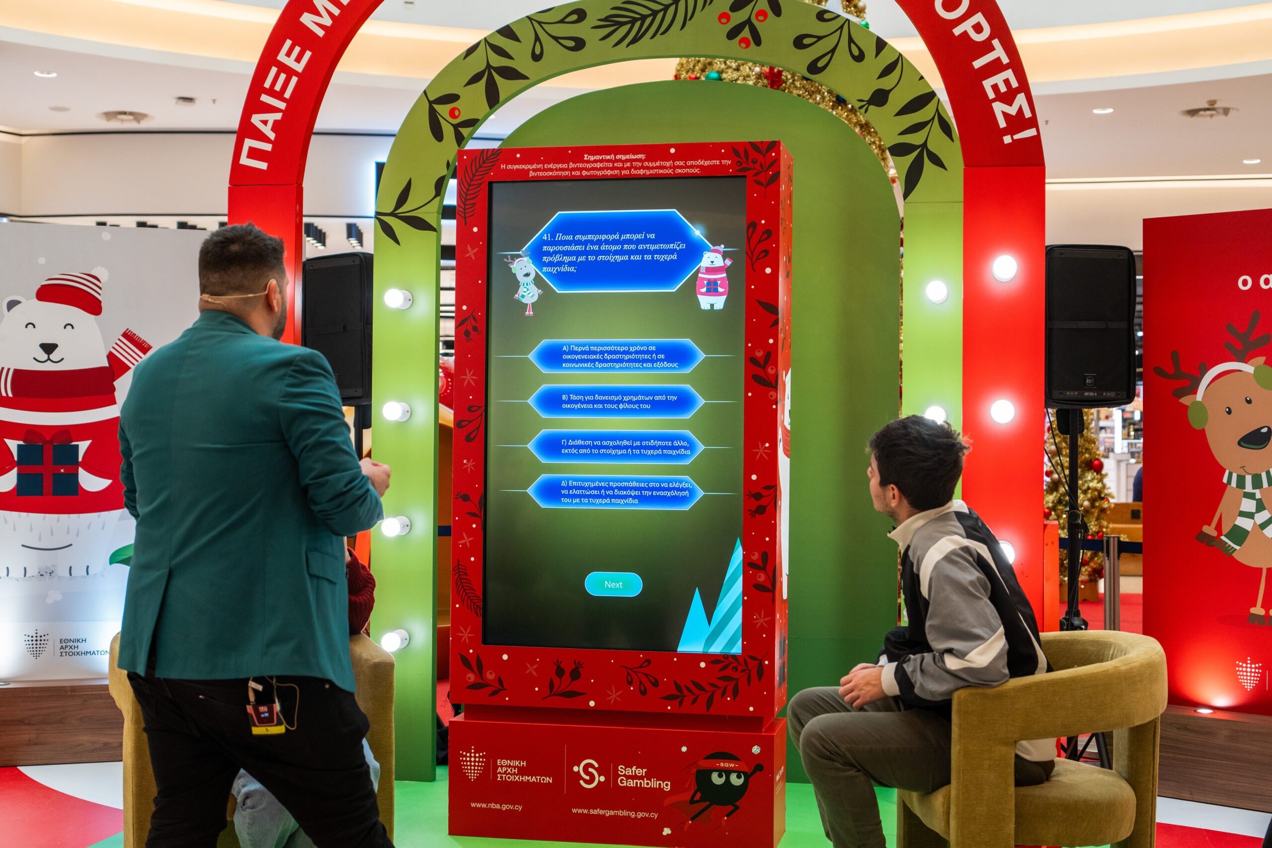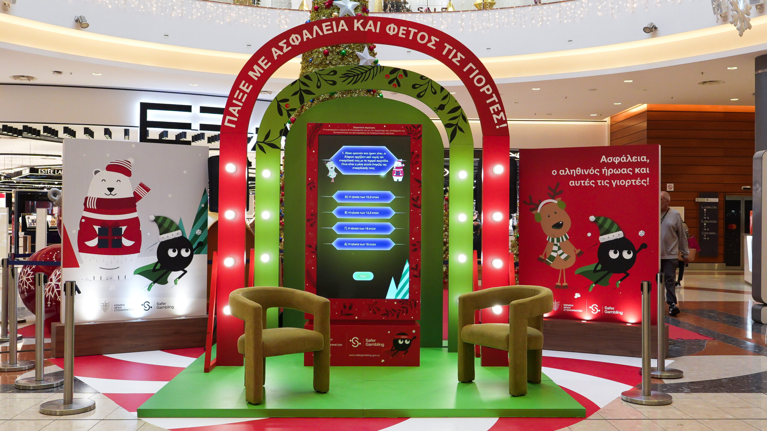 A festive game-show-style activation at the Mall of Cyprus that turned responsible gaming awareness into an engaging live experience.